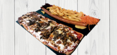EN- Original half-meter pork or chicken Grilled Sausage accompanied by half-meter Pizza of your Choice.